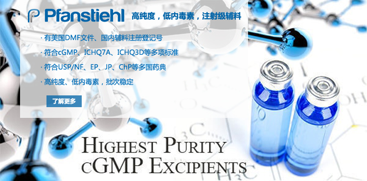 “熱烈祝賀Pfanstiehl的注射級甘氨酸Glycine(G-140)喜獲CDE登記號F20250000403, 這是Pfanstiehl產品獲得的第18個CDE登記號!”甘氨酸在醫藥輔料制劑中應用廣泛,, 可作為緩沖劑,增溶劑,穩定劑等,具有諸多優勢。Pfanstiehl秉承一貫高品質理念,為滿足全球生物制藥行業對于高品質甘氨酸的需求,隆重推出的注射級甘氨酸Glycine (G-140), 具有超高純度,超低內毒素,超低金屬殘留的特點,單獨檢測29種金屬離子,并且新增DNA,RNA,DNA酶,RNA酶和脂肪酶,亞硝酸鹽等多項質量指標的檢測,符合多國藥典規定(USP, EP, BP, JPE, ChP),可用于生物治療性藥物和疫苗的生產。產品信息:· 產品名稱:Glycine, High Purity, Low Endotoxin, Low Metals, USP, EP, BP, JPE, ChP (G-140)· 中文名稱:甘氨酸· 分子式:C2H5NO2· 分子量:75.07 g / mol· CAS號:56-40-6· 產品貨號:G-140產品特點: · 超高純度,超低內毒素,超低微生物含量,超低金屬雜質殘留· 質量指標新增DNA,RNA,DNA酶,RNA酶,脂肪酶和亞硝酸鹽檢測· 符合多國藥典:USP, EP, BP, JPE, ChP· 符合ICH Q3D標準· 符合GMP標準· 已獲DMF和CDE登記號 產品應用:· 緩沖劑· 穩定劑· 增溶劑如果您對Pfanstiehl注射級別Glycine G-140感興趣,歡迎聯系Pfanstiehl 中國區代理商北京西美杰科技有限公司獲得如下詳細的產品概況說明文件和測試樣品。Pfanstiehl Inc.最新產品系列如下,歡迎聯系北京西美杰科技有限公司獲取100g裝免費樣品。北京西美杰科技有限公司為Pfanstiehl中國代理,為客戶提供完善的技術支持與售后服務。歡迎撥打西美杰客服電話400-050-4006或者登陸網站www_xmjsci_com.syshhl.com了解更多信息。 更多>西美杰介紹